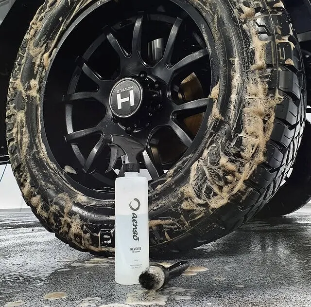 “レボルブ”は特別に調合されたタイヤ・クリーナーです。走行中に付着する泥、油性の汚れだけでなく、タイヤ・ドレッシングやワックスなどをタイヤ表面から除去します。“レボルブ”はタイヤをテカリのない、綺麗で自然な、サテン調の風合いに戻します。タイヤ・ドレッシングを塗布する前のクリーニングに最適です。